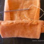 A másik végén hajtsátok be az anyagot és így varrjátok rá az előzőleg a hajpánt belsejéhez varrt anyagra.