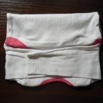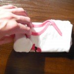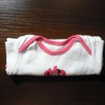 1. Az egyik body-t fordítsátok mintával lefelé és hajtsátok be a két ujját. (Rövid ujjúnál ugyanígy kell). Ezután hajtsátok vissza a patentos részét,