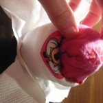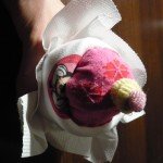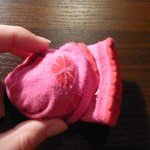 4. Most a „muffin” közepén csináljatok egy lyukat, ebbe kerül majd a „zoknitöltelék” 🙂