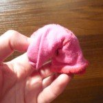 6. Fordítsátok ki és a kapott zoknigombócot alakítsátok gombafej formájúvá.