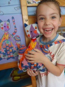 Én nagyon szerencsésnek érzem maga, mert Anyukám bármit megvarrt, amit csak kértem. Volt óriási Skála Kópém, még nagyobb Pumuklim és Hupikék Törpikék mintás melegítőm. Nagyon örülök, hogy kaptam sok „anyavarrta” játékot, ruhát, mert ezeket meglátva még ma is eszembe jut számos gyerekkori élmény. Anyaként a legszebb, legemlékezetesebb ajándékokat akkor adjuk, ha azt mi készítjük a gyerekeknek. Készítsetek Ti is nagyon sok maradandó és egyedi ajándékot a gyerekeiteknek akár a Te rajzolsz, én varrok! által, akár magatoktól. Megéri!!!
