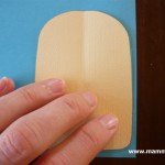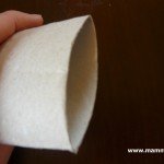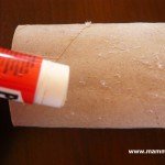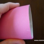 1. Nyomjátok össze a WC-papír gurigát laposra és ragasztózzátok be a stifttel mindkét oldalát. Ezután ragasszatok rá bármilyen színű színes papírt.