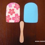 3. Rendezzétek párokba a kivágott papírokat, majd ragasztózzátok be a fagyik belsejét ragasztóstifttel. A pálcika végét ragasztópisztollyal kenjetek ragasztót, hogy jobban tartson, majd nyomjátok össze a lapokat.