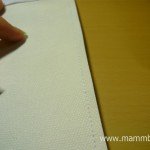 1. Ha meglévő párnát vontok be, akkor mérjétek meg mekkora viaszos vászon fedi be. Egyszerűen csak tegyétek az anyagra a párnát és “takarjátok” be! Így lesz egy hajtott oldala és három “varrnivaló”.