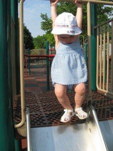 Amikor kint vagytok a játszótéren, mindig figyelj oda a kicsire, még akkor is legyen rajta a fél szemed, ha más szülőkkel beszélgetsz! Legyél a gyerkőc mellett, hiszen egyrészt fél pillanat alatt baleset érheti, másrészt ez a ti közös időtök!